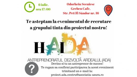 Pe 6 iulie 2018, între 17.00 – 19.00, la Greben Cafe, str. Petofi Sandor, nr. 16 la Odorheiu Secuiesc organizăm ultimul eveniment de selectare și recrutare din cadrul proiectului nostru în regiunea Centru. Pentru înregistrare vă rugăm scrieți la proiect.ada.centru@asociatia-asura.ro.